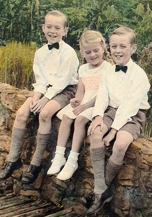 David Bullimore was the (non-identical) twin brother of Antony, also of our year. Here is a photo of the boys and their sister in their childhood -- David is at left, their sister Patricia in the middle, and Antony at the right.