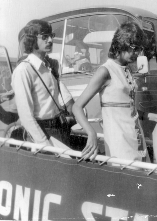 Ken met Felicity Henderson at a Parks Department Christmas function in 1966. They quickly became a couple, and were married in1970. Ken and Felicity did not have children, and they were able to enjoy many trips to the United States, Europe, and Asia. Here is a photo of the young couple catching an inter-island ferry in Greece: